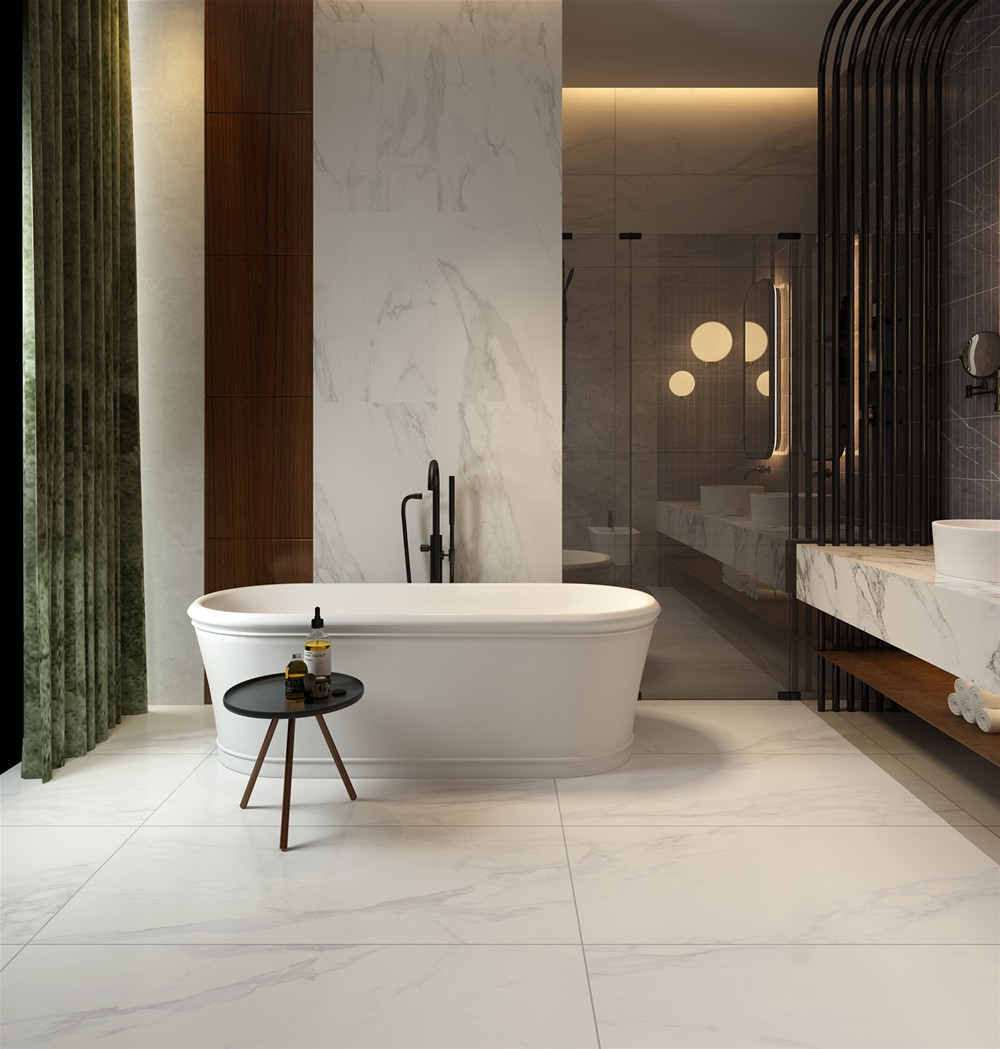 浴室地磚的鋪設需要注意幾個方麵。第一個需要注意的地方就是地磚不能鋪平,因為浴室的水需要流向下水口的,鋪設地磚需要有點傾斜度,這樣才能讓水順利地流入下水口。第二個需要注意的就是地磚的接縫處必須要做的一樣,還必須要和壁磚的接縫對齊。