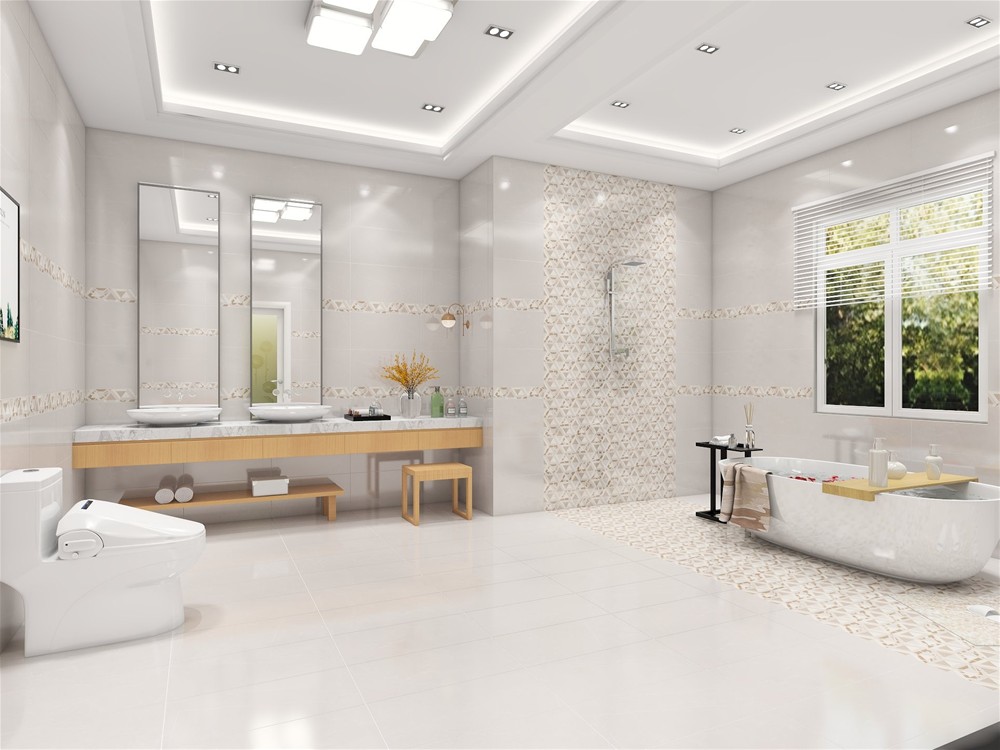 浴室地磚的鋪設需要注意幾個方麵。第一個需要注意的地方就是地磚不能鋪平,因為浴室的水需要流向下水口的,鋪設地磚需要有點傾斜度,這樣才能讓水順利地流入下水口。第二個需要注意的就是地磚的接縫處必須要做的一樣,還必須要和壁磚的接縫對齊。